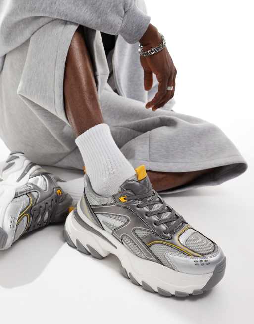 ASOS DESIGN chunky sneakers in white with silver and yellow panels