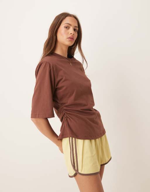ASOS DESIGN cinched tee with shoulder pads in brown