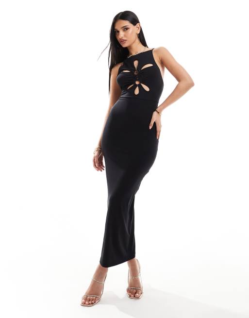 ASOS DESIGN circle trim cut out midi dress in black
