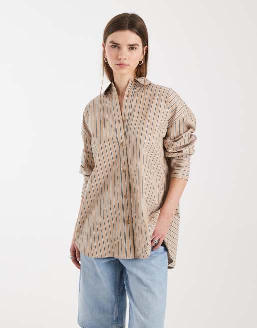 ASOS DESIGN classic cotton shirt in brown stripe