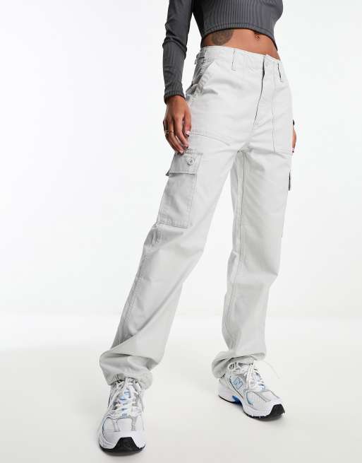 ASOS DESIGN clean cargo pants with tab detail in light gray