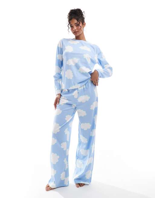ASOS DESIGN cloud long sleeve top & pants pajama set in blue