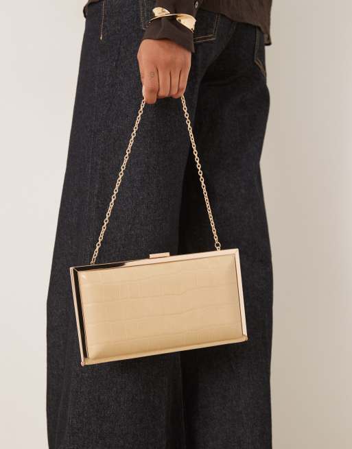 ASOS DESIGN coated square frame clutch bag in cream croc