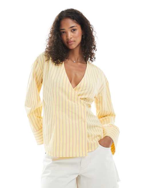 ASOS DESIGN cocoon sleeves collarless shirt in stripes