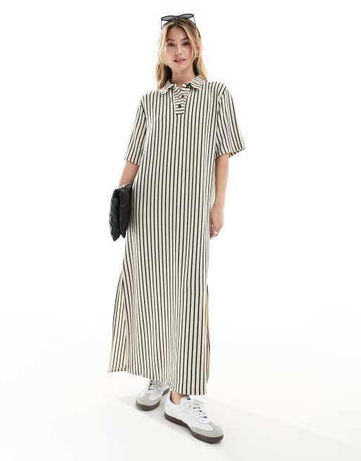 ASOS DESIGN collared placket midaxi t shirt dress in stripe