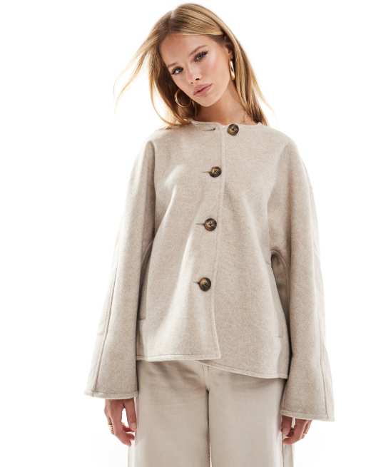 ASOS DESIGN collarless chuck on formal coat in oatmeal