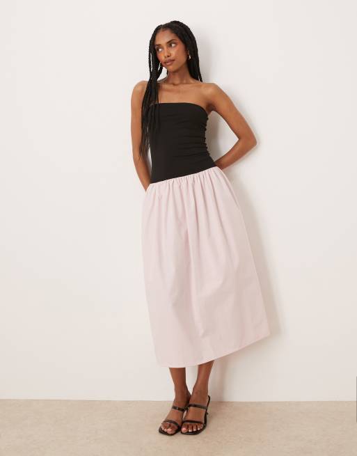 ASOS DESIGN color block poplin mix bandeau maxi dress in pink