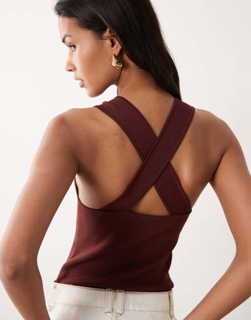 ASOS DESIGN compact cross back cami top in chocolate