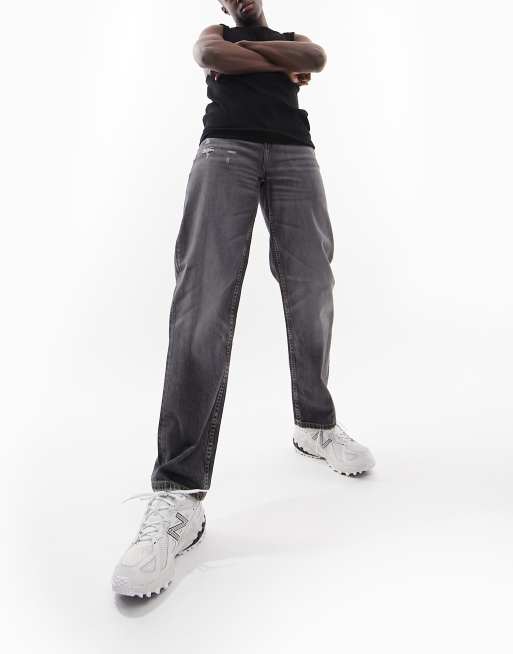ASOS DESIGN Cone Mill Denim baggy 'American classic' jeans in washed black with abrasions