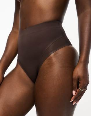 ASOS DESIGN Contouring medium control high waist brief with mesh in brown