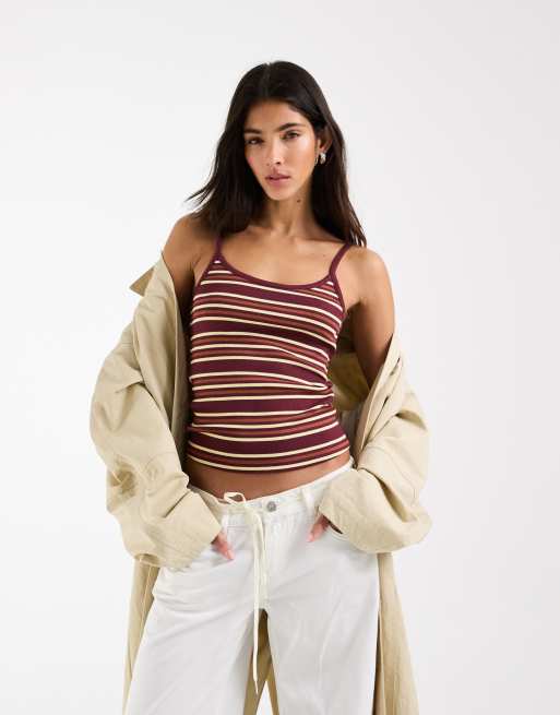ASOS DESIGN contrast binding scoop detail tank top in burgundy stripe