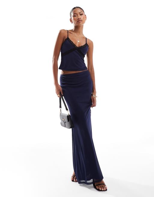 ASOS DESIGN contrast lace trim cami top in navy - part of a set