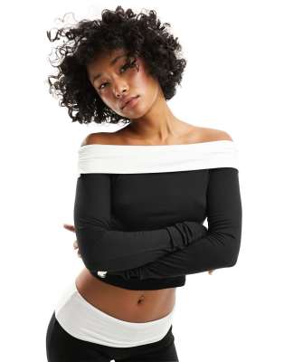 ASOS DESIGN contrast off the shoulder top in black - part of a set
