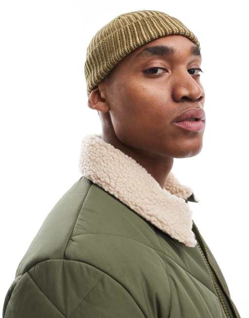 ASOS DESIGN contrast rib beanie in green