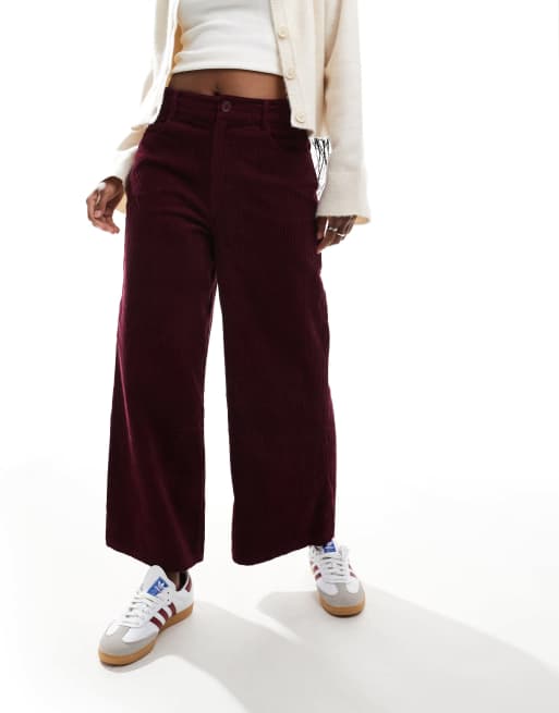 ASOS DESIGN cord cropped wide leg pants in dark cherry