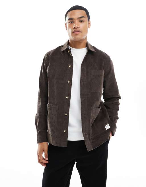 ASOS DESIGN cord overshirt with badge detail in deep brown