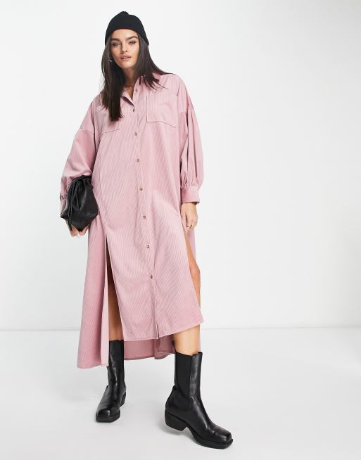 ASOS DESIGN cord oversized maxi shirt dress with slits in pink