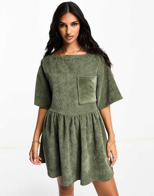 ASOS DESIGN cord T-shirt dress in khaki