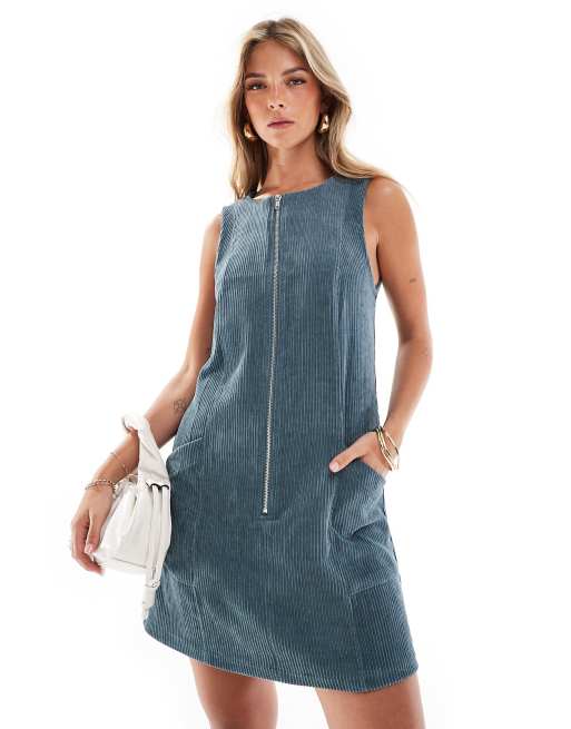 ASOS DESIGN cord zip up mini dress in slate blue