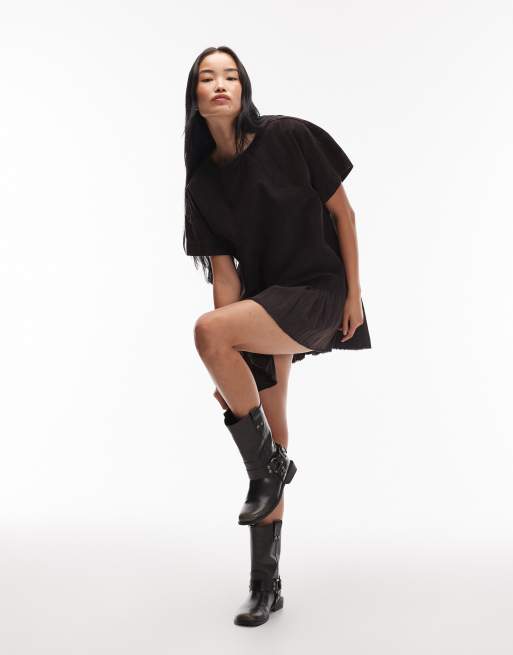 ASOS DESIGN corduroy hybrid T-shirt mini dress in washed black
