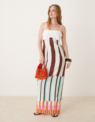 ASOS DESIGN cotton linen color block cami maxi dress in mixed stripe