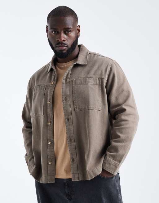 ASOS DESIGN cotton overshirt in brown