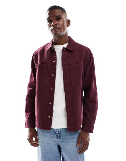 ASOS DESIGN cotton overshirt in burgundy