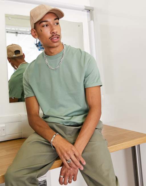 ASOS DESIGN cotton t-shirt with cuffed sleeve in green