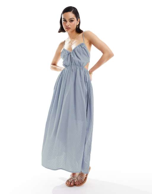 ASOS DESIGN cotton textured midi sundress with cut out in icy blue