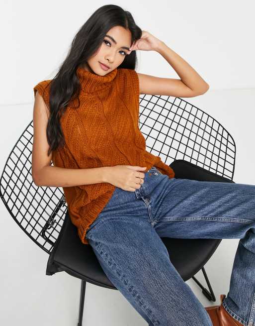 ASOS DESIGN cowl neck knitted tank top with cable in brown