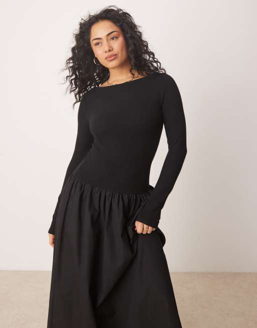 ASOS DESIGN cozy poplin mix maxi dress in black