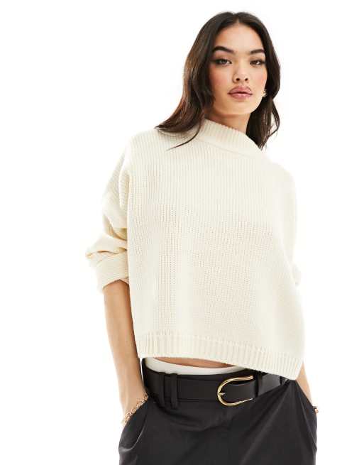 ASOS DESIGN crew neck cropped sweater in cream