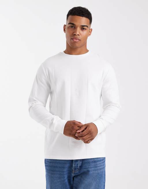 ASOS DESIGN crew neck long sleeve T-shirt in white wide rib