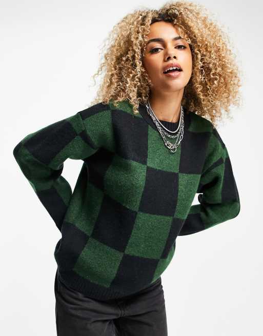 ASOS DESIGN crew neck sweater with large checkerboard pattern