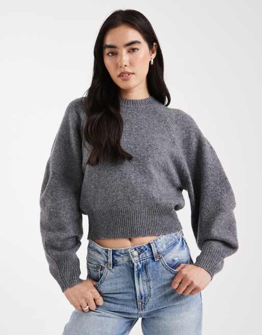 ASOS DESIGN crew neck sweater with raglan detail in charcoal