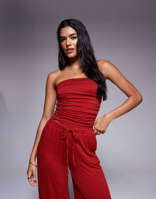 ASOS DESIGN crinkle bandeau top in rust - part of a set