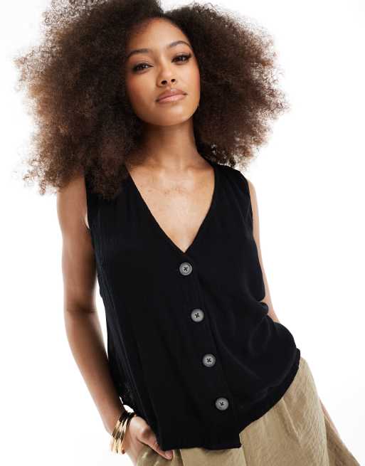 ASOS DESIGN crinkle linen look vest in black