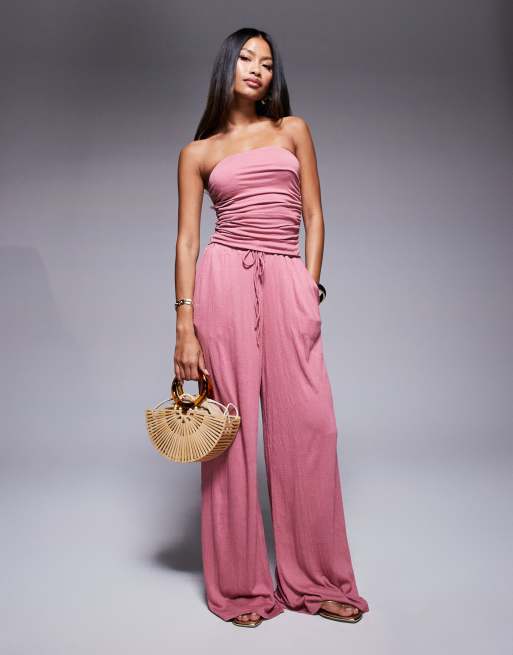 ASOS DESIGN crinkle tie waist wide leg pants in dusty rose - part of a set