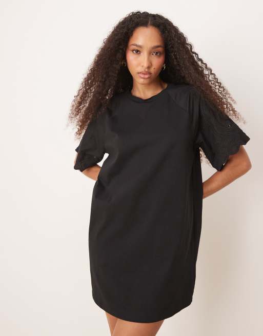 ASOS DESIGN crochet lace sleeve T-shirt mini dress in black