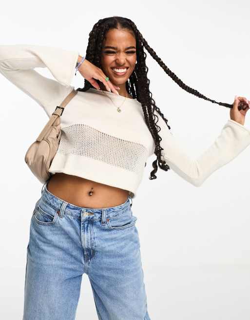 ASOS DESIGN crop sweater with open stitch hem