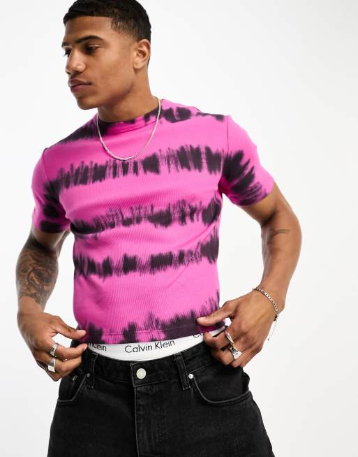 ASOS DESIGN cropped skinny T-shirt in pink tie dye