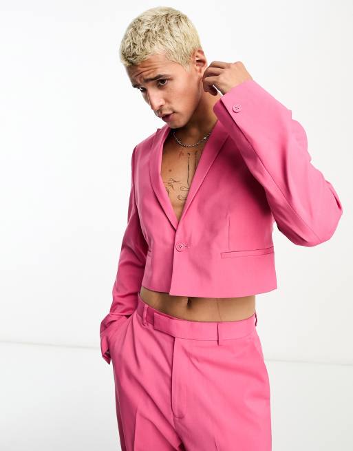 ASOS DESIGN cropped suit jacket in hot pink