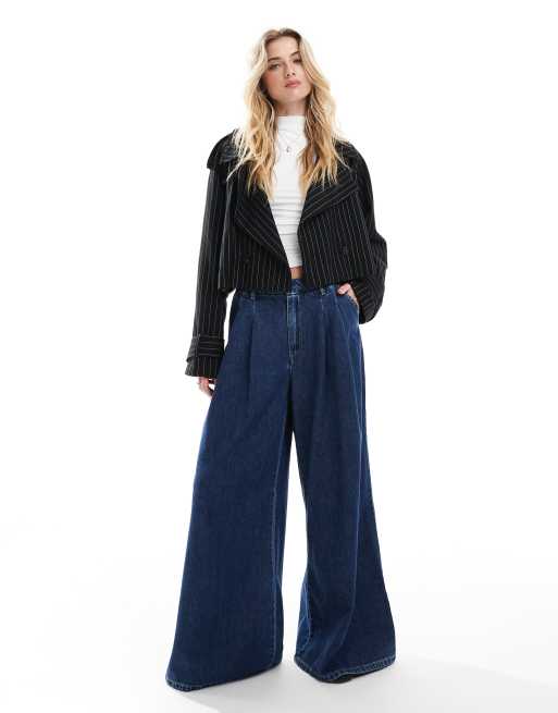 ASOS DESIGN cropped trench coat in black pinstripe