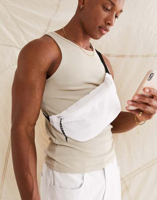ASOS DESIGN cross body fanny pack nylon with contrast pullers in white