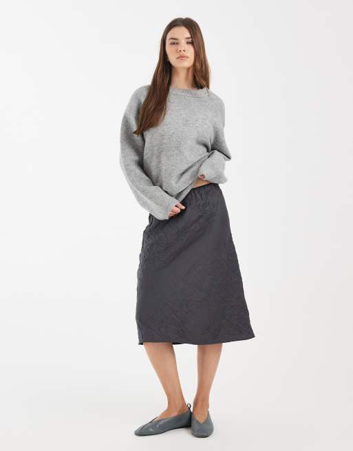 ASOS DESIGN crushed satin midi skirt in charcoal