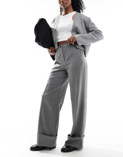 ASOS DESIGN cuffed wide leg tailored pants in gray