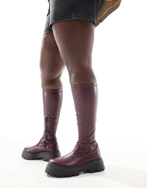 ASOS DESIGN Curve Canyon sock chunky knee boot in burgundy