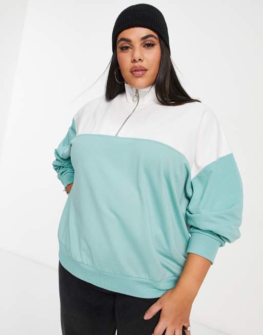 ASOS DESIGN Curve half zip sweatshirt in color block