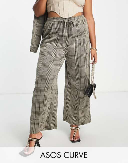 ASOS DESIGN Curve jersey slouch wide leg pants in sage check