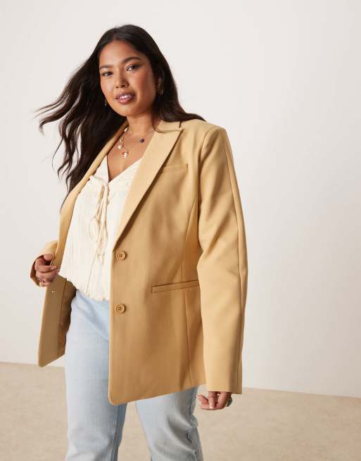 ASOS DESIGN Curve moulded hip blazer in caramel